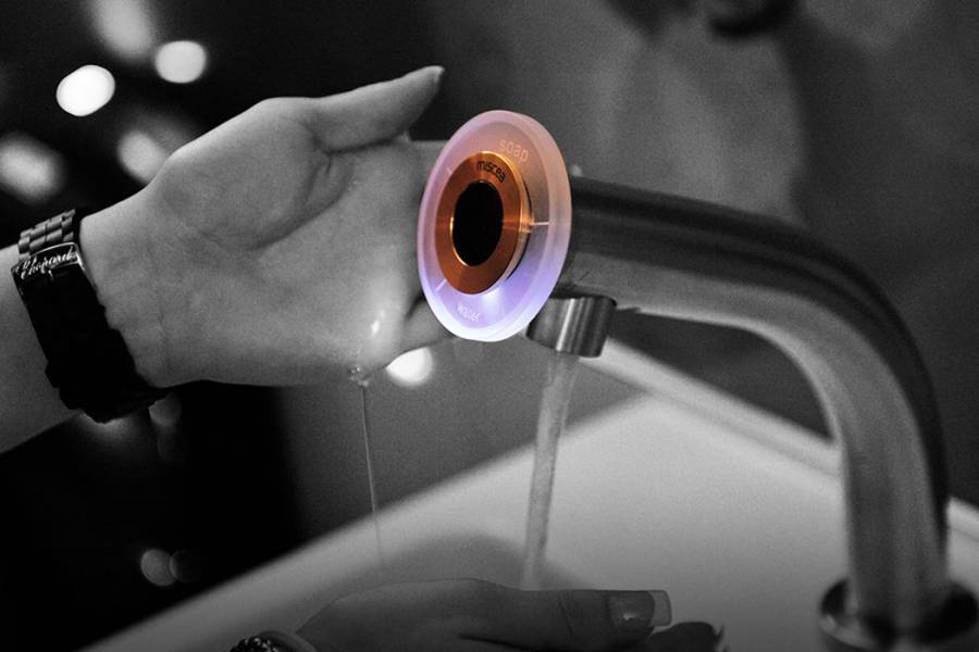 这款超感应智能水龙头能在你需要的时候提供肥皂液、消毒液和温水服务。只需在它指定的感应区域晃动一下,类似于洗手间的烘干机,它就能提供相应的东西,同时还可以通过左右的加减按钮来控制水的温度。采用感应系统可以把卫生清洁问题降到最低。