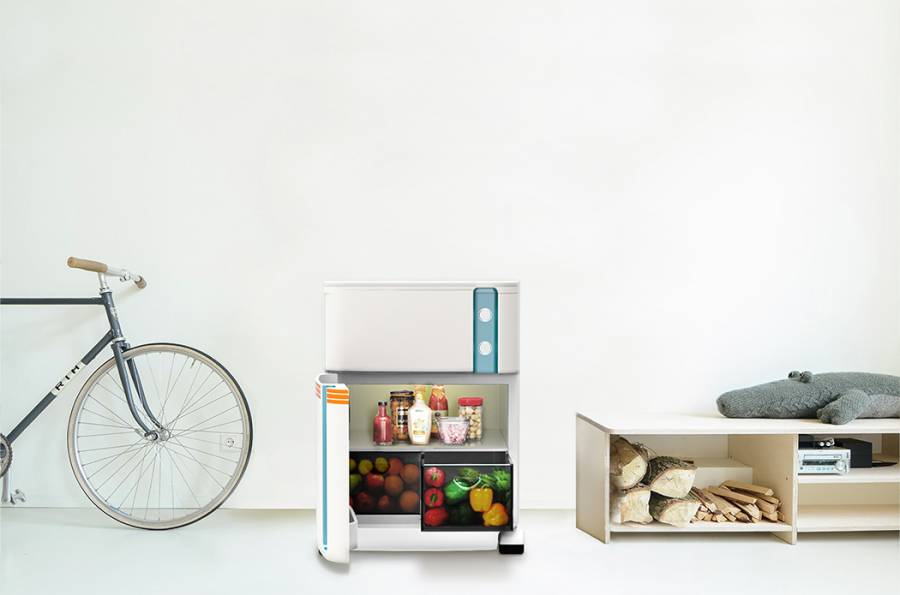 这款创意产品看似好像是一个迷你冰箱,事实上,除了冰箱的功能之外,还有微波炉和电磁炉功能。在产品的最顶端,为电磁炉台面,隐藏式设计,几乎看不出来电磁炉的存在。触控式操作,也符合现代用户的使用习惯。接下来的第二部分,就是微波炉。右侧带有两个控制钮,分别是微波炉的定时时长和火力大小选择,使用起来也十分简单。最下方的两层就是冰箱,因为使用了电子式制冷而非压缩机制冷,因此仅带有冷藏室,去掉了冷冻室设计。非常适合于小户型的房间比如单身贵族或是蜗居的用户使用。