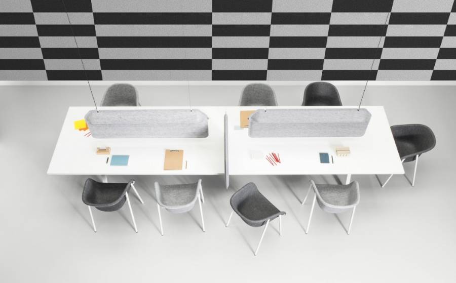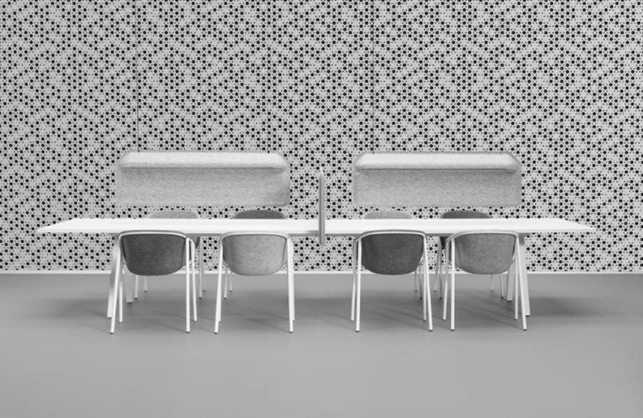 开放式的工作环境有时会让人无法保持专注的状态工作,也很难有效地保护隐私。设计师设计了一款带灯饰的隔板,两边分别装有LED 灯,可以同时为两边的使用者提供稳定的照明。它所使用的毛毡由回收的PET瓶制作而成的,不仅质地柔软,对声音也有极强的吸附性,一定程度上可以减轻噪音干扰。