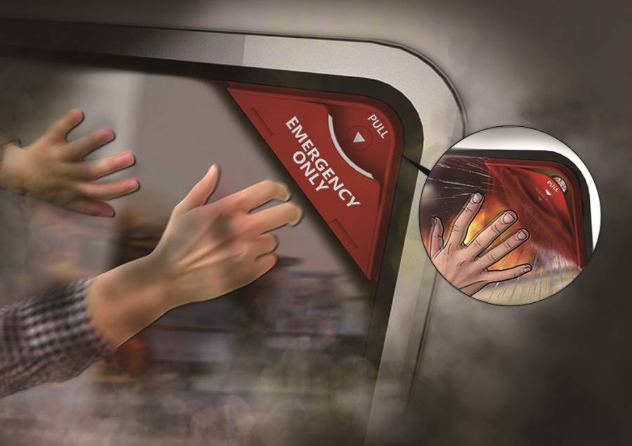 在大型车、公共运输工具发生车祸时,车窗击破器的存在关乎着全车人的性命。但是车窗击破器在灾害发生时很难找到、乘客没有敲击到角落的击破点,更重要的是,现有击破器在女性、老人、小孩等使用者容易力气不足,因此延误了逃生的时间。而Corner Breaker是一个本來就设置在车窗边角的击破器,使用者在使用时只要将手指伸入把手中向外拉到底再放手,Corner Breaker便会透过內部弹簧的弹力用力撞向玻璃,达到一个安全且省力、快速的击破动作。