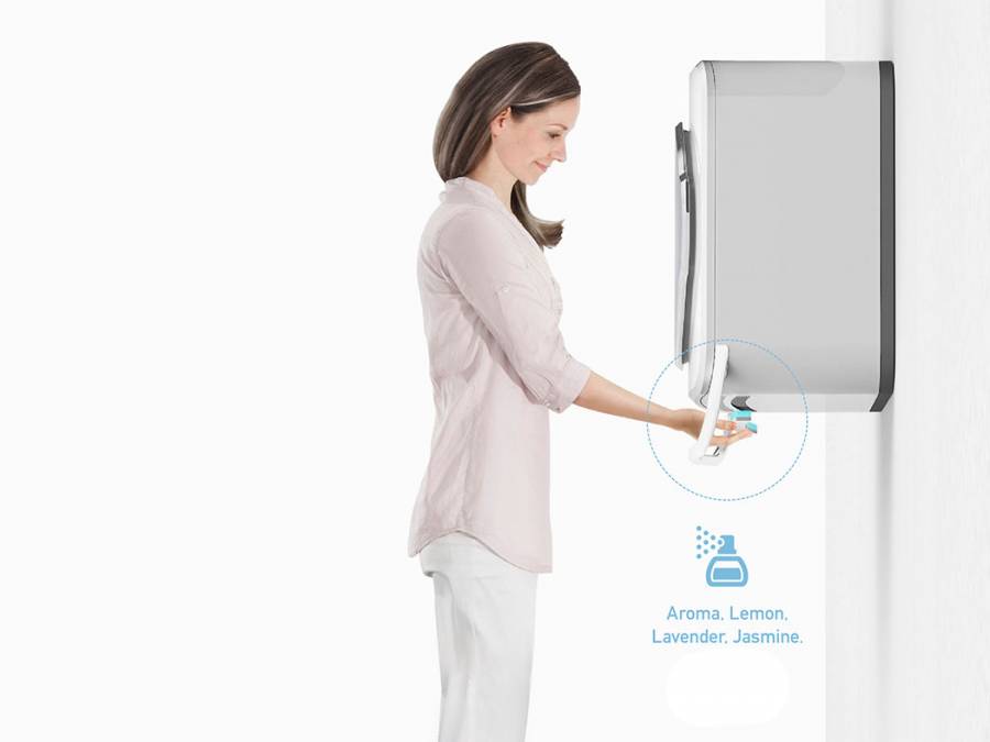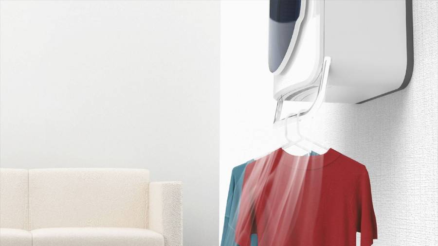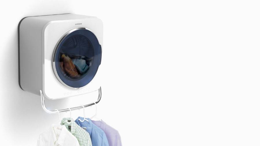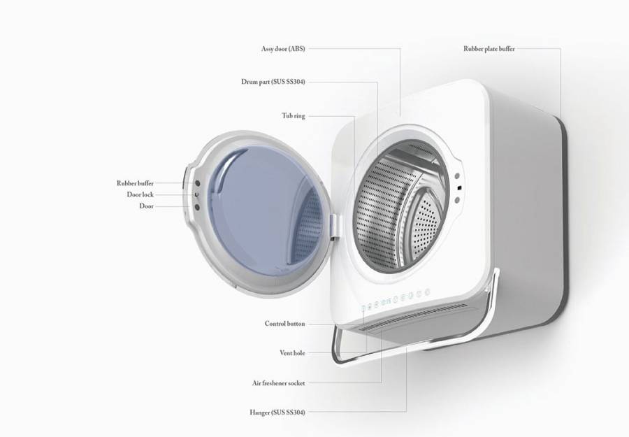 设计师Wonkyung Jang设计的这款壁挂式洗衣机,不仅节省空间,在将少量衣物洗完后可以直接拿出来挂到下面,同时洗衣机本身还能吹出非常自然的风,将衣物吹干。用户还可以在里面添加一些天然香料,让衣物吹干后还能有清新的香味。