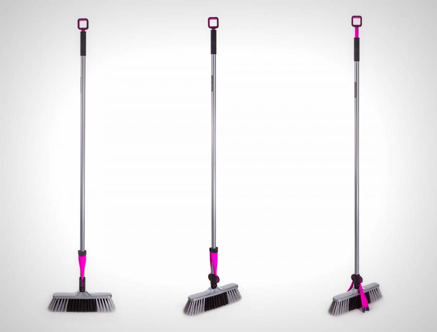 打扫卫生的时候有时会找不到放置扫帚的地方。设计师Ranjiv Sirpal设计了一款可单独站立的扫帚,它配备了两只小腿,按下把手处的开关即可伸出双腿,站在地板上。
