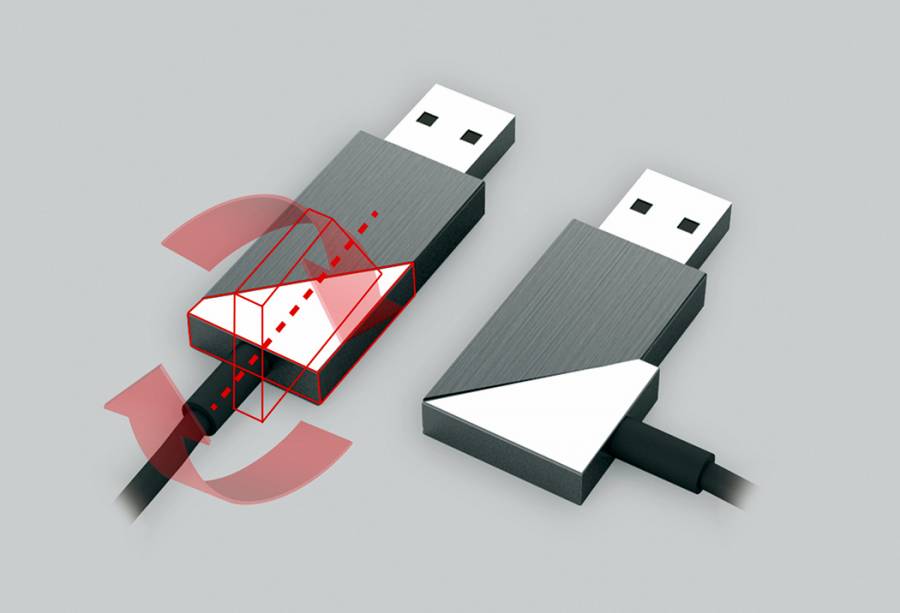 一般USB插头都是直线式的,但在某些时候,你会希望它是L形的,以便走线的方向能更顺。由此设计师Chou Wan Yun设计了一款可改变角度的USB插头,这款USB插头可以在直线和L形之间切换。
