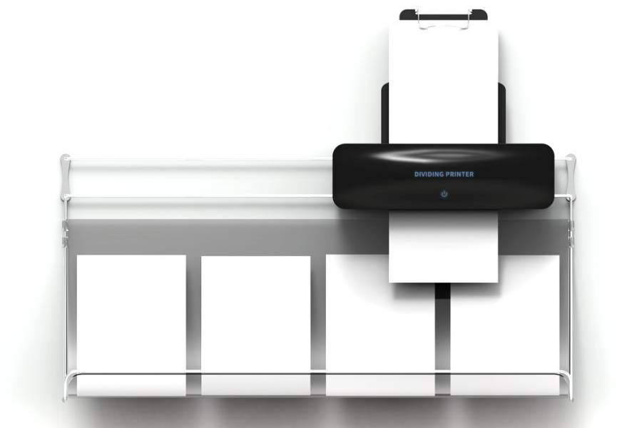 传统的打印机打印多份文件时会堆叠在一起,影响办公效率。这是一款可以按打印文件不同对其进行分类的打印机,打印机安装在一个可以左右移动的轨道上,以便于它能够自如的移动实现其分类功能。