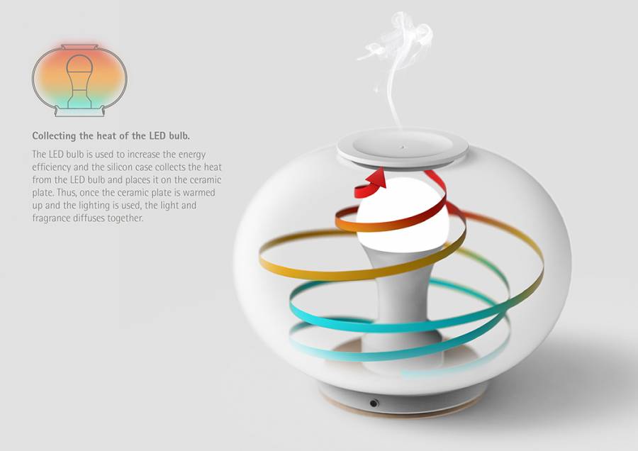 这是一款既能提供照明又能为你的房间带来芳香的香薰灯Ro。椭球型的硅胶灯罩看上去很像是一个传统的灯笼,顶端是一块陶瓷的香薰托板。使用的时候,只要将精油滴在上面,香气就会通过灯光散发的热量扩散开来,可以说是一举两得。它还能根据你的喜好发出两种光,一个是象征日光的白光,另一个是象征月亮的黄光。