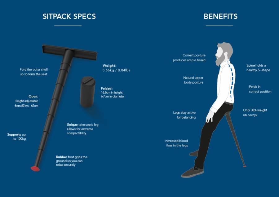 这个名为Sitpack的排队神器简单来说其实是一款便携式座椅。经折叠后小到可以放在口袋里,展开之后会变成一张只有一条腿的座椅,它的材质非常强韧,最多可以承受 100 千克的重量。带上它,无论你是在车站候车、参加露天活动、还是户外运动途中想要休息,都能即刻在身后找到一张舒适的座椅。
