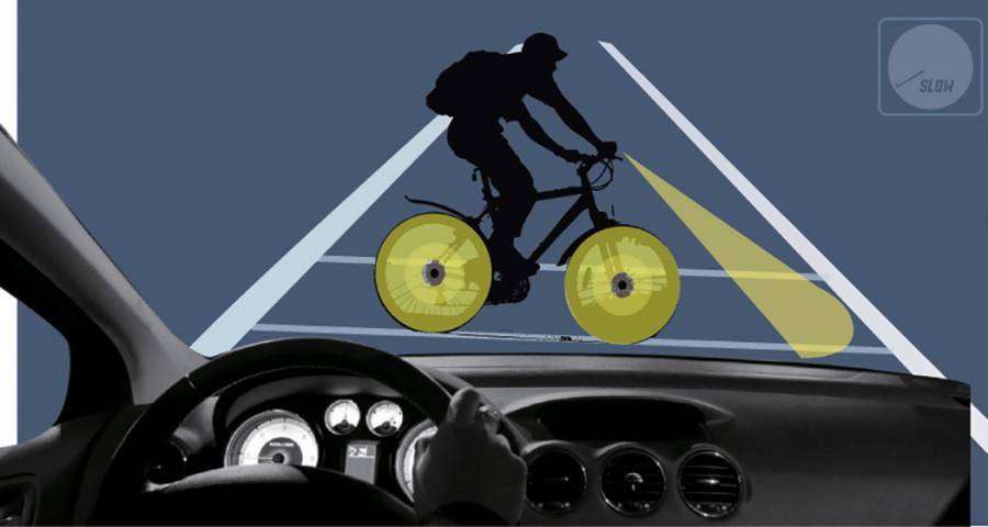 Chen Hsin Hui设计的作品Racing wheel,在自行车的车轮上加装发电装置,结合APP装置控制灯源开启,骑乘时可发出亮光,提升自行车的侧面能见度,增加安全性。发电装置转动时,约可产生3分钟电力,提供智慧手机1分钟通话的电量。