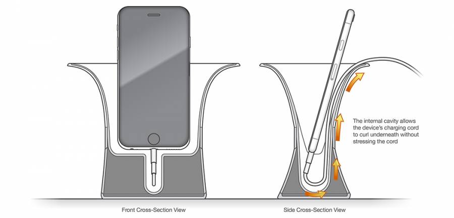 Shuffle Three设计的一款名为 Audiovase 的扩音器,让你不需要蓝牙音箱也可以畅快地听音乐了。相比蓝牙配对、插入连接线之类繁琐的步骤,它使用起来非常方便,只要放入手机即可。扩音器可以装下目前各类主流的手机,底部还留有一个空隙容纳手机充电线,保证了续航。