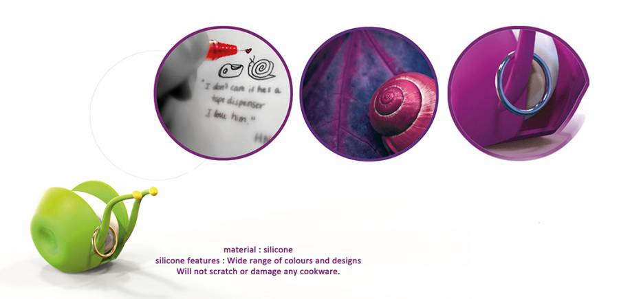 这是一款设计灵感来自蜗牛的肥皂盒Snopi,设计师挑选了超级环保的有机软硅胶作为Snopi的材质,这种材质既利于上色,又不会划伤皮肤及损害任何炊具。主妇们做家务时可以把手上戴的戒指挂到Snopi小触角上,避免丢掉或被水冲走。