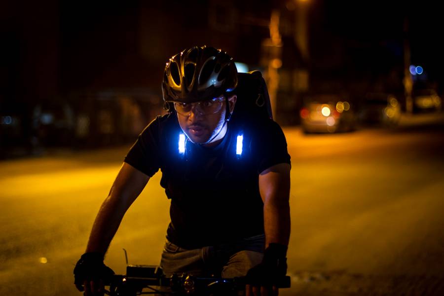 这款LED荧光通勤背包专为骑行者设计,它具有良好的耐候性,使骑行更安全。背包配有16个LED尾灯、30个LED刹车灯、两个示廓灯和两个前照灯,可以从不同的方向看到骑行者。
