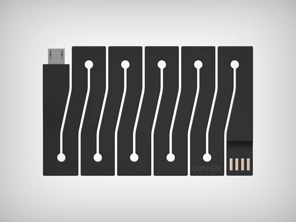 “Connex”设计其实很简单,用卡片的形式来设计数据线,大小差不多我们常规的信用卡,方便放入钱包、卡包之类的小包。由于采用柔软的硅胶材质,数据线还能延长不少,这有区别于其它纯卡式的数据线,实用性更强。