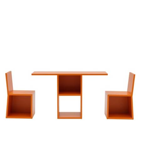 Trick 是一套多种用途的家具组合,分开即为两把椅子和一张桌子,合并到一起即为2×3的收纳展示橱柜,可根据实际需要进行自由调整,实用性颇高。