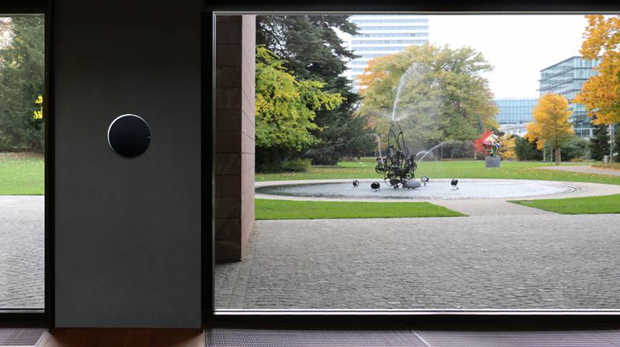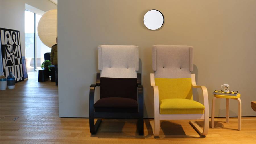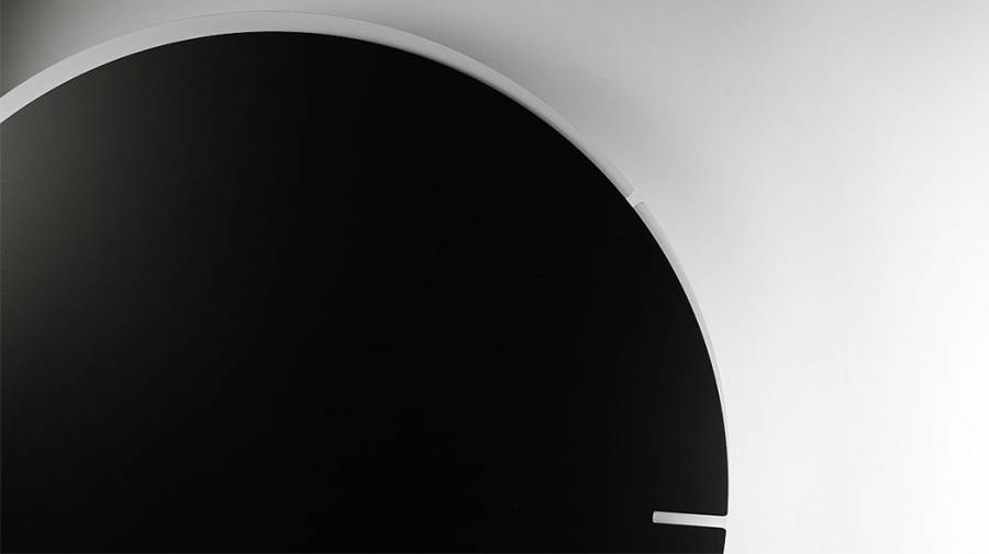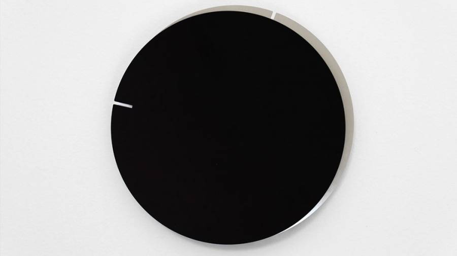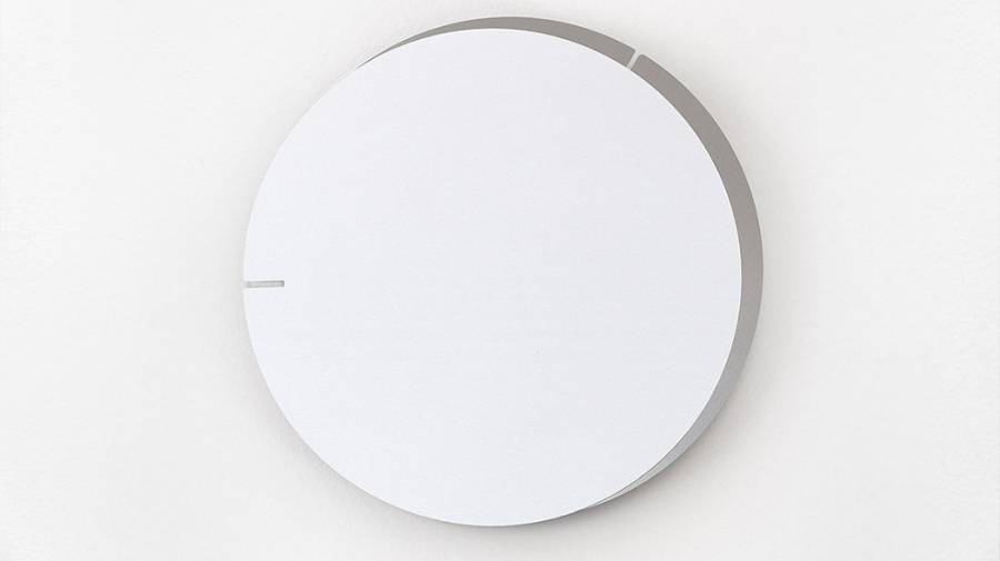 这款挂钟完全模糊了指针和刻度的概念。它由前后两个颜色不同的圆盘组成,都只带有一个很小的缺口,分别指示小时和分钟,极简但巧妙。如果不是特别注意,会忘记这是一个钟,它缓解了因时间带来的紧张感。