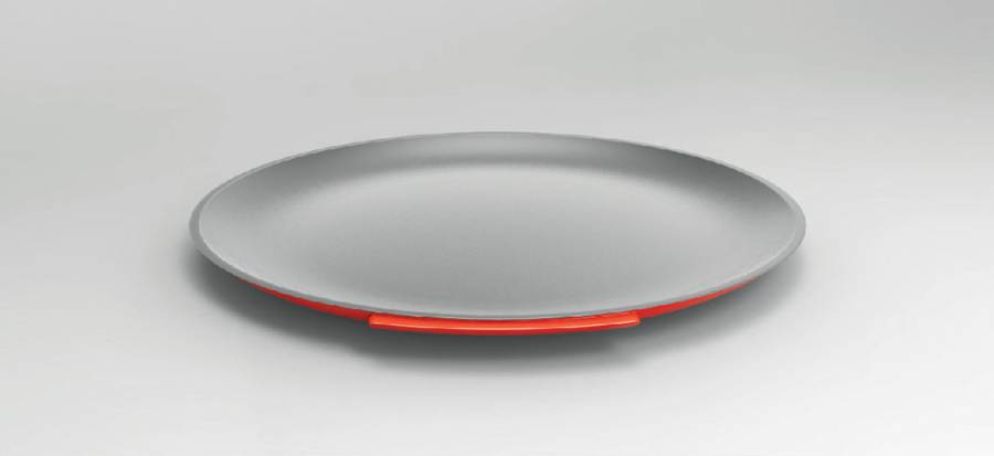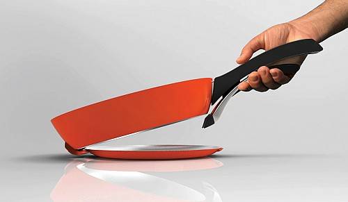 这是一款可分离式煎锅的概念设计。这个巧妙的创意将煎锅分成两个部分,其中的锅底用一个易于分离、又可稳固夹紧的夹子固定在煎锅上。一旦烹饪结束,可以直接把煎锅送到餐桌,只需握紧把手把上半部分去除,美食就留在了底部的煎盘上。
