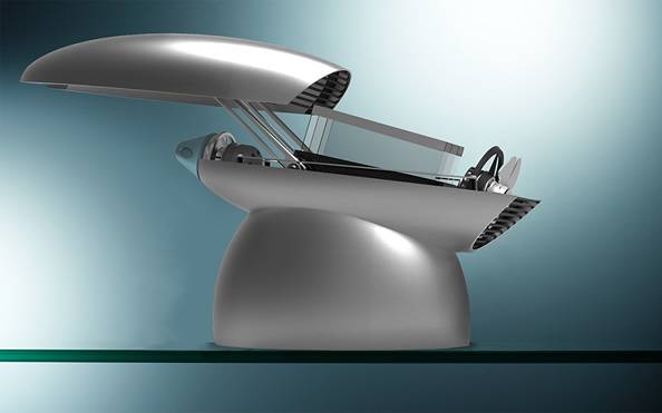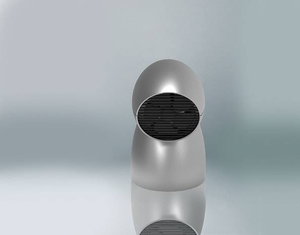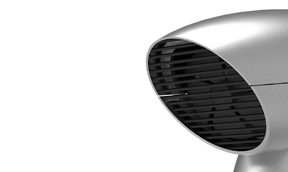 “conique”烤面包机造型上看着就像是电风扇,其实这风扇的主要功能是散热。打开机器上部顶盖,里面可见有两个烤面包用的玻璃陶瓷插槽,内置热传感器可根据温度差自动启动风扇散热。