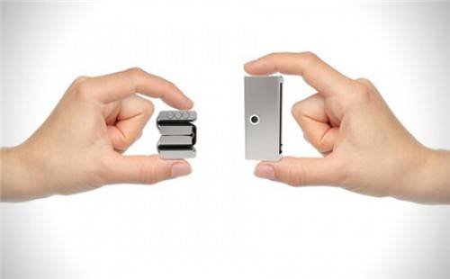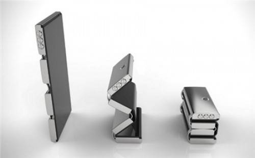 智能手机屏幕越来越大,虽然看着很爽,但有时候真是难以装入兜兜。“Foldable DRAS Phone”手机拥有可折叠的屏幕,可根据需要使其缩小长度,增大厚度。而且,即使折叠之后,屏幕上仍可显示时间、电量、信号等基本信息,使用极为方便。