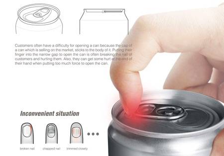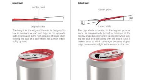 如果你没有一个长指甲,想要打开易拉罐可费劲呢。这款新式易拉罐有着斜坡杯缘,只要将拉环推向对侧即可腾出一定的空间方便你用指尖拉起,方便不伤手。
