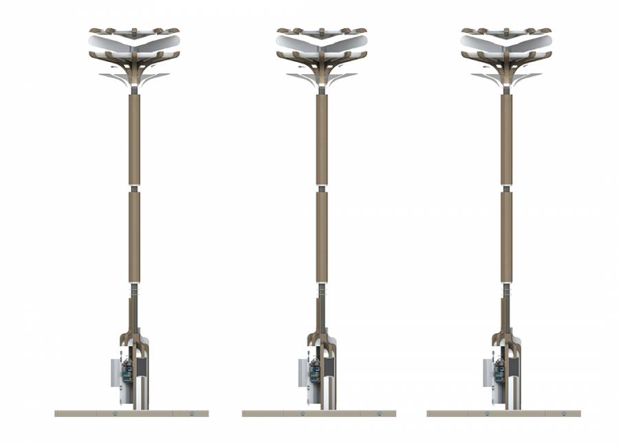 随着智能汽车时代的临近,是时候为大街上的加油站寻找一些替代品了。于是设计师Scott Moore灵光一现,想出了Luna路灯充电桩。这些充电桩是模块化的,有三种尺寸,以适应不同的用法和需求。Luna模仿树木的形态设计,对环境友好。其顶部像普通路灯一样照明,底部则可以用来为电动汽车充电,一举两得。