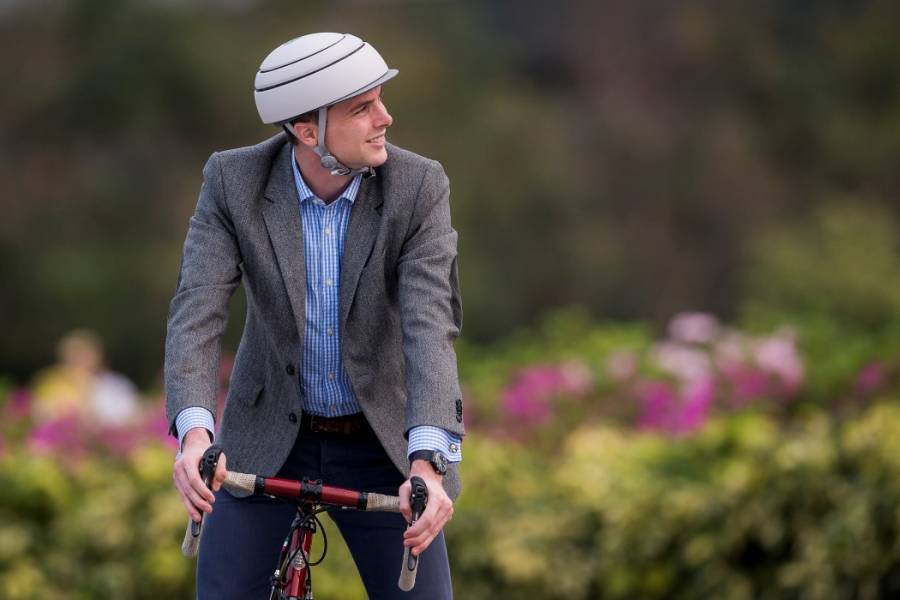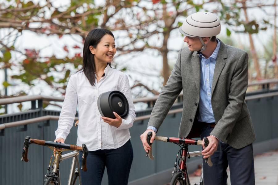 Closca Design推出了一款名为Fuga的折叠式骑行头盔,Fuga头盔有三个活动部分,在骑行时展开可以成为非常贴合头部的头盔,三个部分的间隙可以在骑行时为栖息者提供透气;而在不用时则可以按动按钮推平头盔,轻易收纳进随身包裹中。