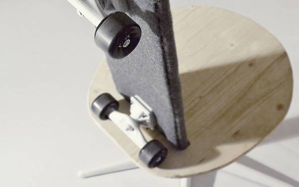 Mobilité是将座椅和滑板两个功能合二为一,滑板在这个组合中首先起到的是一个靠背作用,所以它是由外层附有厚毛毡的固态泡沫制成。不仅这种材料非常舒适,而且滑板还可以自由地向前或向后移动,就像市面上大多数符合人体工程学的靠背一样。在座椅和滑板的结合上,采用一个非常简单的凹槽设计,直接把滑板嵌在里面即可,不需要任何一个螺丝。当需要使用滑板的时候,只要将它从凹槽中拔出就可以跳上去飞驰了。