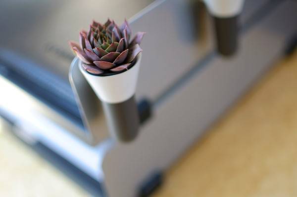这款世界上最小的盆栽设计,它的大小只有大拇指那么大,你可以把它放置在任何的地方,比如你的办公桌文件夹上或者是墙上挂的装饰画里面,甚至你可以把它吸附在你的电脑屏幕上,你可以选择不同颜色的花卉种植在里面,这样让你的工作的地方看起来就像一个小型的花圃,让更多的绿色来装饰你的世界。