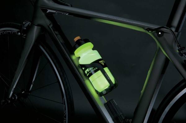 在夜晚骑车安全性永远是最重要的,Topeak新推出的iGlowCageB是一款带着LED灯底座的水壶架,你可以在水壶中灌满水,这样骑行时开着灯,会让这些液体成为了发光的一种介质。这款骑行水壶架有很多型号,可以将灯改变很多颜色,例如红色、绿色、紫色和蓝色,可以搭配你自行车的颜色,或是你当天的心情!