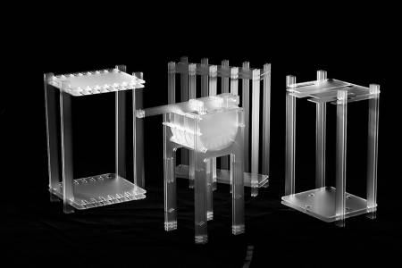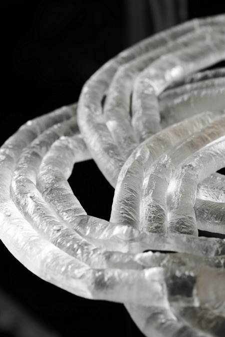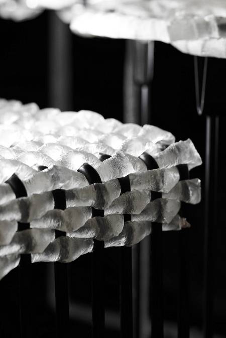 手工制作充满了温暖与人情,而工业制造则是高效大批量的代名词。两位本土设计师收到日常生活中穿针引线、编制蝴蝶结等生产方式的影响,制作了一种液态编织绳,塑料薄膜里被注满了液态环氧树脂,这样就成为了有韧度和支撑力的放大版棉线,用它们去“缝制”桌椅板凳时可是有非常不一般的体验。