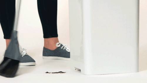 Bruno或许是市面上最体贴你的垃圾桶了,它内置一个吸尘器,并在桶底端设有吸入口,收集起来的垃圾灰尘直接扫到垃圾桶下面就好了,帮你完美解决最后一站的问题!