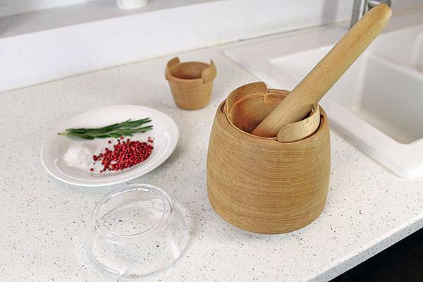 研磨器设计采用环保材料木料车削制作成的,所以不用担心它有化学物质,另外它有一个亚克力的透明罩子,这样在研磨的时候可以防止颗粒喷溅出来,它有几种不同的尺寸,可以相互叠加放在一起,你可以用它来研磨花椒、胡椒等,甚至还可以用它来研磨果汁,小巧的体积和精致的表面处理让你爱不释手。