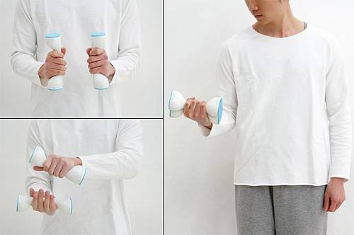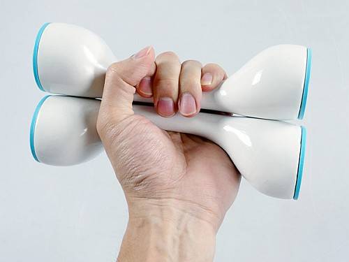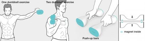 用哑铃一般笨重而且换重量时相当费劲,这套1/2哑铃对其形状进行了再设计,让两只哑铃能合并使用,当你需要不同重量的多种哑铃运动时,这就很方便。