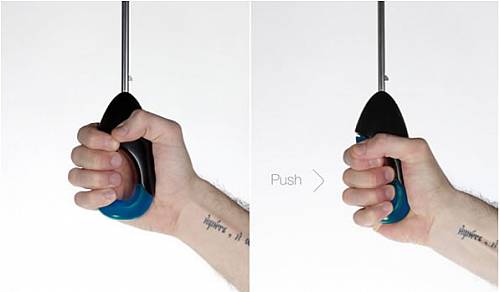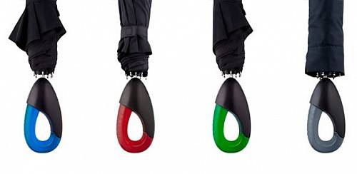 Impulse Umbrella伞柄设计就像“雨滴”的造型,彩色部分为硅胶材质,握感也非常不错。它又号称为“健康伞”,意在这个人体工程学设计的伞柄上,它可以锻炼你的前臂肌肉、手腕和手指,可以防止中老年关节疾病,手指和手掌的刺激,也有利于大脑和神经系统。