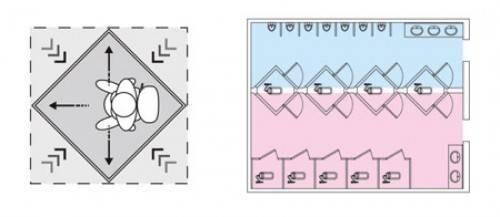 在商场或一些公共场合,经常有女厕所门口排长队而男厕所却空空如也的局面。设计师构想的这个绅士厕所Gentolet将男女厕所“合二为一”,即厕所中间是一个个双向门的蹲便单间,男女都可以分别打开,但如果有一方先开门,另一边的门即刻紧锁并收到里面有人的提示,希望这样的设计能够解决女士的燃眉之急,同时提升厕所空间的利用率。