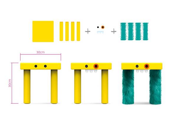 儿童总是那么的活泼好动,喜欢追逐新鲜好玩的事物,因此一样东西无论多么好,用不了多久就会厌烦。为了适应儿童的心理,迎合儿童的喜好,Oblikus设计了这个CreaChair儿童座椅装饰。它可以为儿童的座椅添加眼睛,嘴巴,牙齿,腿,甚至皮毛……让一个普普通通的小凳子变成一只可爱的小怪兽或者小动物,非常的可爱,有趣。这些材料可以自由的搭配组合,可以设计出成百上千的造型,对孩子自然更有吸引力。它还可以让孩子自己搭配,锻炼孩子的动手能力和创造能力,真是一举两得!