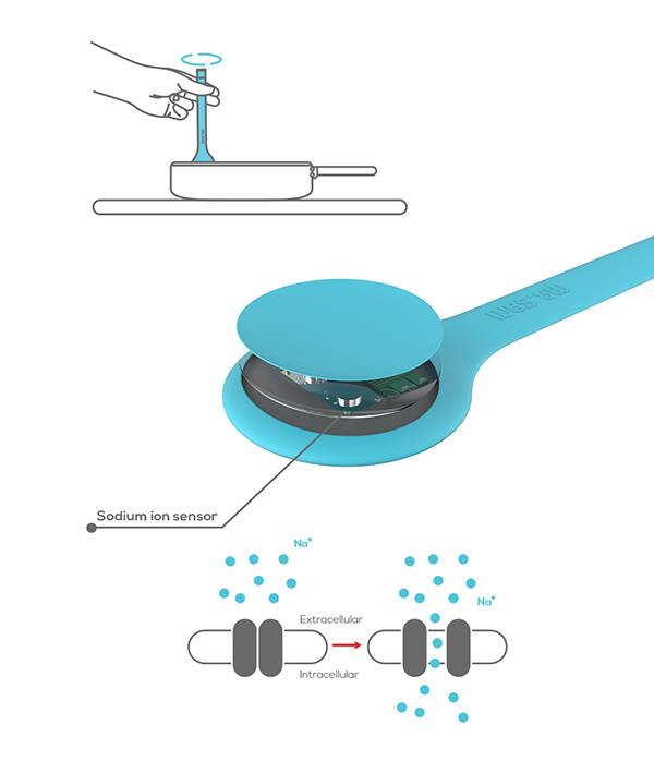 食盐虽然是做菜必不可少的材料,但是过度食用会对身体造成很大的危害,特别是一些口重的用户。为了避免这些用户的食盐摄取过度,Joongu Kim设计了这个控制食盐勺子。虽然从表面上看,它和普通的勺子没什么分别,但其实它是一个智能的电子勺。它可以和手机无线连接,设定一个安全的食盐摄取量,当用户获取的食盐超过规定限度后,超出的部分就会自动的从下面漏掉,使得用户每次都可以获取到适当的食盐进行烹饪,饮食也就更加的健康。