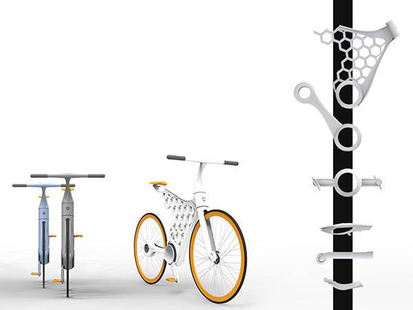 随着电脑时代,手机时代的相继发展,很多预言家都会认为下一个将会是3D打印时代。3D打印机的普及化,会使得所有的用户都成为了生产者,很多的商品都无需购买,只要有材料和图纸,都可以在家里制造出来,例如Omer Sagiv设计的这个自行车。它的整个车架和很多零件都是直接通过3D打印得到的,规矩的正六边形排列组合制造了一个非常稳定和规矩的效果,而且它的数量和大小都是可以根据用户自身的需求进行随意调节的。这样的设计使得车的哪一部分出了问题都可以及时的补充,非常的方便,时尚。