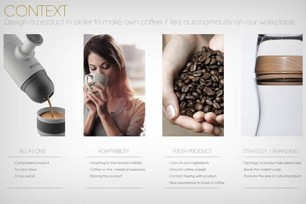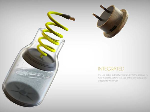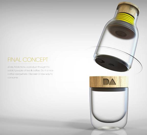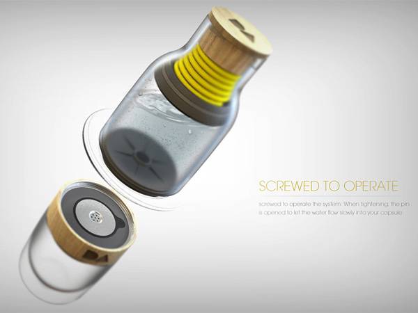 快节奏的城市生活,高强度的工作压力,使得咖啡已经成为很多上班族每日不可缺少的东西了。但即使再忙碌,也应该适当的提高自己的生活质量,哪怕只是一杯咖啡,也要尽情的享受这百忙之中的美妙时刻。Antoine Beynel设计的这个自由组合咖啡机是一个非常小巧,方便的咖啡机设计。它的样子像一个普通的塑料瓶,但是它却包括了盛水容器,煮水,咖啡容器,USB插头,正常插头等多种功能。只要带上它,用户不需要其他任何设备的帮助就可以随时喝到香浓可口的咖啡,避免了各种尴尬的情况发生,非常适合忙碌的上班族和外出旅行的用户使用。
