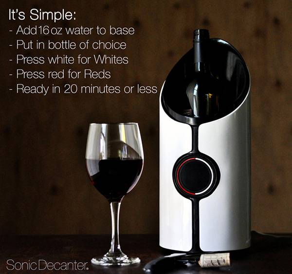 对于喜欢喝葡萄酒的用户来说,醒酒是一个非常漫长而又重要的步奏,如果酒醒的不好会大大影响品尝葡萄酒的口感。为了让葡萄酒的口感达到最佳,Sonic Decanter设计了这款超声波醒酒器。这款醒酒器造型非常具有科技感,时尚,大气。当用户需要醒酒,只要将瓶盖打开,插在里面,简单输入葡萄酒的正确信息,它就可以通过最新的超声波技术帮助葡萄酒快速回复活性,也许是要几分钟,用户就可以喝到口感最佳的红酒。