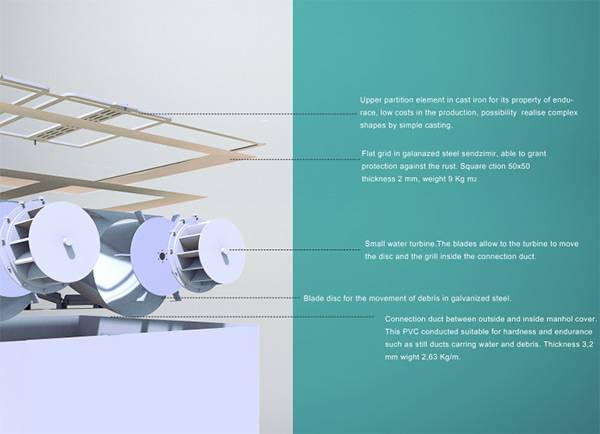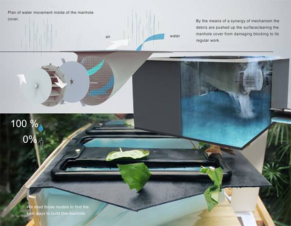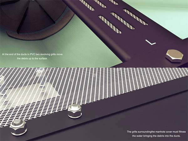 当连绵的大雨下个没完,城市很有可能陷入危机。其实最大的危害并不是大雨本身,而是大雨造成的积水,堵塞了交通,影响了出行。为了避免城市里雨水堆积,Cesare Tamagno和Simone Di Gioia设计了这个避免堵塞排水系统。这个系统最大程度的增加了排水速度,同时还拥有一定的防堵塞功能,当有树叶等赃物堵塞下水道的时候,这个系统可以自动将堵塞物吹开,最大效率的排水,保证了大雨天的道路通畅。