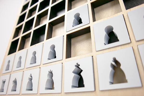国际象棋是一个非常经典的棋盘类游戏,它的组成虽然非常简单,但是里面的变化却高深莫测。对于很多西方国家的家庭来说,他可以说是一个家庭必备的东西。然而,在平时将它展出来会占据很多的空间,如果将它收起来又很难会再想起来,甚至会遇到想玩的时候找不到的尴尬情况!为了让象棋更加适合现代的家庭,Sean设计了这个Turnt国际象棋。它最大的特点就在于它是可以挂在墙上玩的。设计师巧妙的利用方格子的形式,将棋子和棋盘结合在了一起,更加的直观,方便,而且节省空间。即使在游戏结束之后也不必收起来,将它挂在墙上也是非常美观,时尚的。