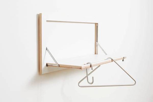 衣服太多,再大的衣柜也不够用;不穿的时候非常占地方,穿的时候却翻来覆去找不到;这可能是很多用户都经常遇到的情况,为了解决用户的这些烦恼,Ambivalenz设计了这个多功能折叠衣架。它的结构非常的简单,只是一块木板和两个滑动连接件。不用的时候可以将它紧贴在墙面放置,几乎不占用任何空间。使用的时候只需要将木板拉下来,就可以将常用的衣服放在上面,或者挂在上面,既方便寻找,看上去又很整齐,非常适合一般家庭使用。