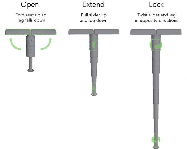 排队是一件非常累,非常讨厌的事情,当队伍特别长的时候,很多用户会陷入一个两难的境地,等待遥遥无期,放弃十分可惜,这会使用户变得更加疲惫。为了让用户在排队的时候能够坐下来稍微休息一下,Theo Fischer Ginman设计了这个随身携带座椅。这个座椅只有一个腿,而且非常的轻,移动起来非常的方便。当排队结束后,只需要短短的几秒钟就可以将它收在一个很小的盒子中,用户可以将它放在背包里,拿在手上,甚至放在口袋里。