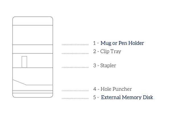 在办公室可能有很多小的工具需要经常使用却有非常的零散,很不容易整理。为了解救那些凌乱的办公环境,为了节省有限的办公桌面积,Papere设计了这个Kinhas办公组合工具。它采用独特的组合方式,将存储器,充电器,磁盘盒,订书机,打孔器,笔筒,盒子等工具结合在了一起,堆叠起来既美观又节省空间。使用的时候能够大大减少寻找时间,工作起来更加得心应手。