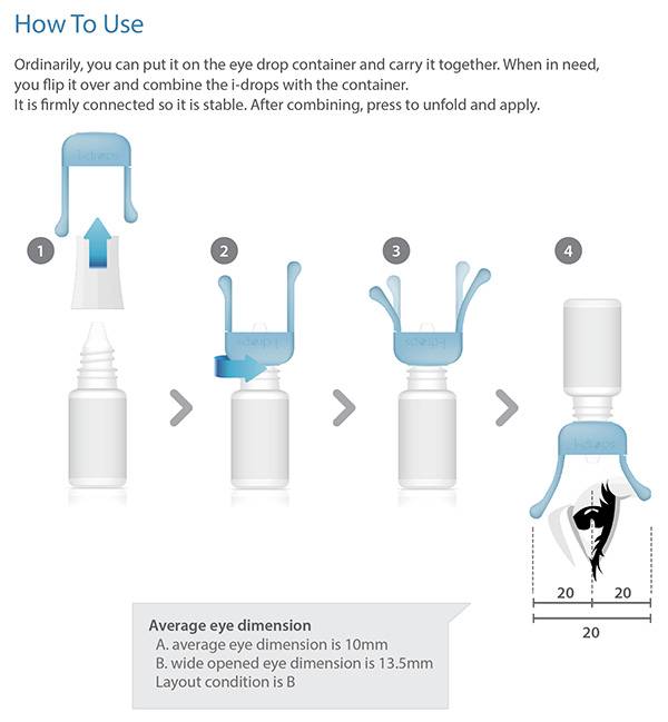 对于那些天天佩戴隐形眼镜的用户来说,滴眼药水可以说是非常简单的事情了。但是对于大多数人来说,滴眼药水不闭眼是非常困难的事情,尤其是第一次滴眼药水的时候。为了方便用户滴眼药水,Eunyoung Lee和Kwangtack Lee设计了这个不闭眼滴眼液。这个滴眼液最大的特点就是有一个能够撑住眼皮的瓶盖,正着盖住可以很好的保证滴眼液不外流。如果反着盖,可以在使用的时候撑住用户眼皮,防止用户闭眼,让滴眼液用起来更加的方便。