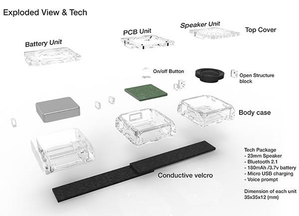 音乐是生命的旋律,它可以给人们力量,平复人们的心伤,丰富人们的生活,因此现在音乐已经成为了我们生活中不可缺少的东西,无论在哪里。为了能够更加方便的携带的享受音乐,Hanzhengyi Pan设计了这个腰带式扬声器。它是腰带和扬声器的完美结合,用户可以将它系在腰上,播放着自己喜欢的音乐,这样完全不会影响到用户的活动,也不会感觉到负担。无论是工作,休息,娱乐,运动,用户都可以使用它来为自己的生活加点美妙的享受。