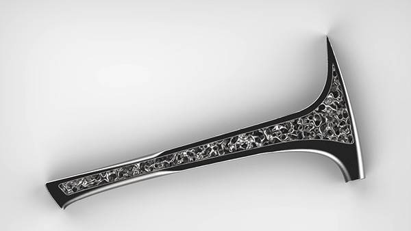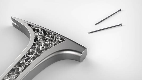 当你第一眼看到这个锤子的时候,你会被这个锤子中间特殊的结构所吸引,虽然它非常的复杂,凌乱,但是看上去非常的精致,美丽,时尚。其实这个结构是Henrik Balzer根据骨头的内部结构模仿出来的,虽然它是为了节省材料,但是这样的结构可能比实心的锤子更加的结实。这样的结构可以为没把锤子节约大约60%的材料,却能达到更好的耐久度和强度。如果用户经常的使用它,会感觉它使用起来非常的灵活,舒适。