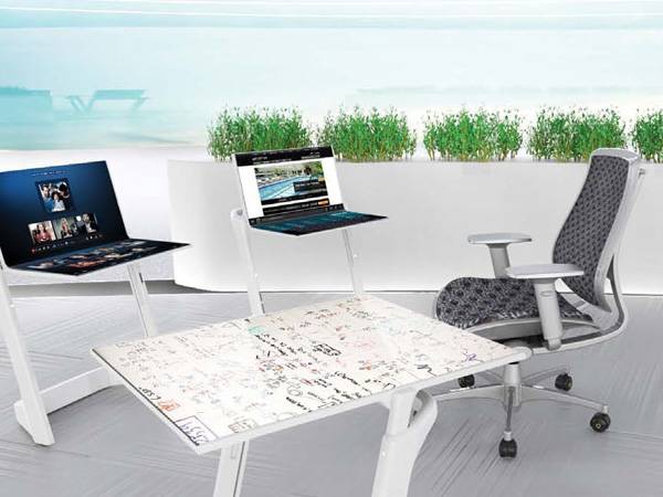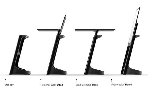 笔记本固然非常的便捷,但是在很多的时候也有它不方便的地方,特别是在一个固定地点谈生意或者公司开会的时候,笔记本电脑的显示和操作也有些不方便了。Gu A Reum设计的这一系列的电脑,都是将电脑和桌子结合在了一起,并且,它们都是可以触屏操控的,这样就方便多个人一起操作讨论。针对不同情况的三种形态,能够满足用户的各种需求,同时,非常好的人机尺寸能够让用户使用起来更加的舒服。