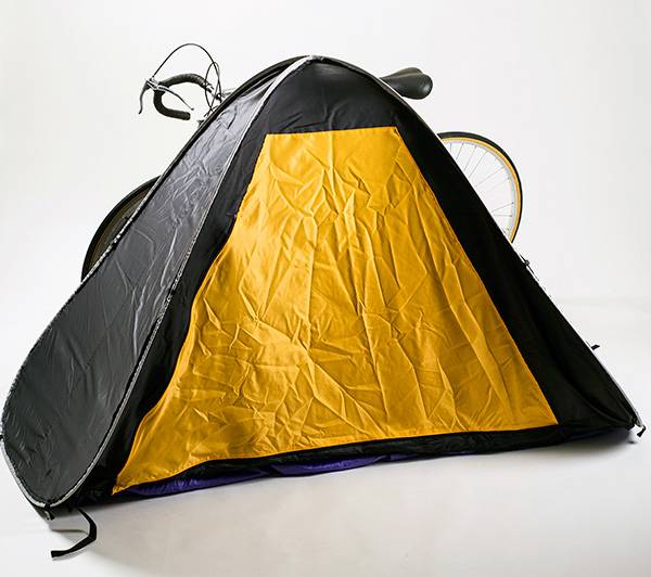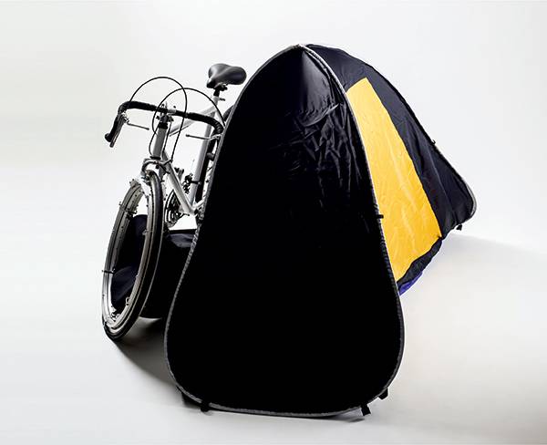骑自行车去郊游已经成了非常时尚的事情,那些具有探险精神的年轻人会非常喜欢这项运动。但是当天色一晚的时候,那些冲动的年轻人就会面临野营的问题,如果忘记带帐篷,那郊游的好心情可能就会荡然无存了。不过,如果你骑得是下面这辆自行车,那你就完全不用担心忘记带帐篷了,因为帐篷就藏在自行车的车轮里。这种专门的车轮没有车条,所以中空的部分可以收纳一个帐篷,这样就会给你的背包腾出很大的空间,而且你睡觉的时候还不用担心自相车被偷,真是一举两得。