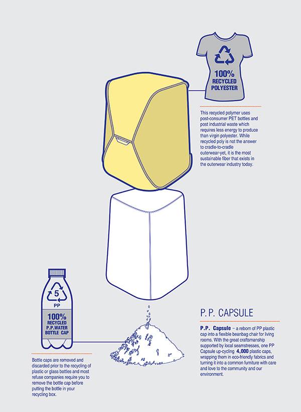 这些可爱的小椅子,你觉得想不到它们都是由消费后的材料制成的。KaCaMa设计工作室设计的这款环保豆袋椅,用轻量级但是很耐用的可持续合成纤维,里面的填充物质是回收的塑料瓶盖磨成的碎片,非常的环保。这个设计最好的地方就在于它可以在世界各处的企业生产,裁缝和加工,而它所需要的材料在世界各处都可以找到。