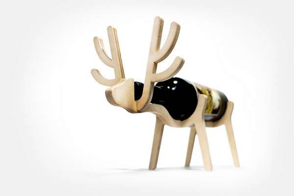由Choi Jinyoung 设计的动物酒架:Conte bleu,木质材料构成,可以组合成4种动物,包括麋鹿、大象、企鹅和杜宾,将红酒放入其中,俨然成为了动物身体的一部分,给木块创造了一个全新的生命。