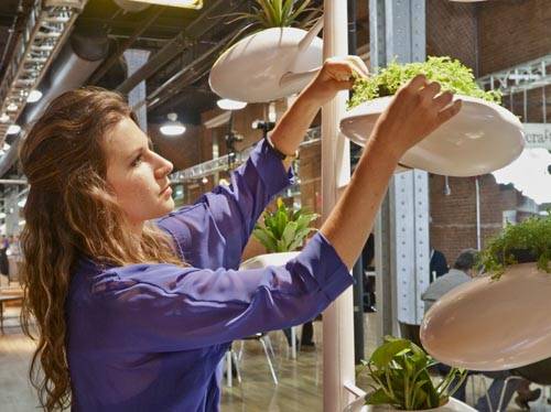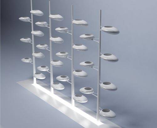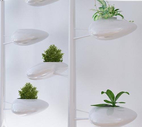 由Danielle Trofe设计的盆栽树(Live Screen),是一个拥有自我灌溉系统的室内种植系统,它可以让人们在自己的家里面就能打造一个都市园艺。设计者在类似于树干的“枝干”上安装了多个小型的椭圆形豆荚花盆,然后这些被种植在花盆里的植物通过一个“树干”下方的一个容器吸收所需要的生长养分。